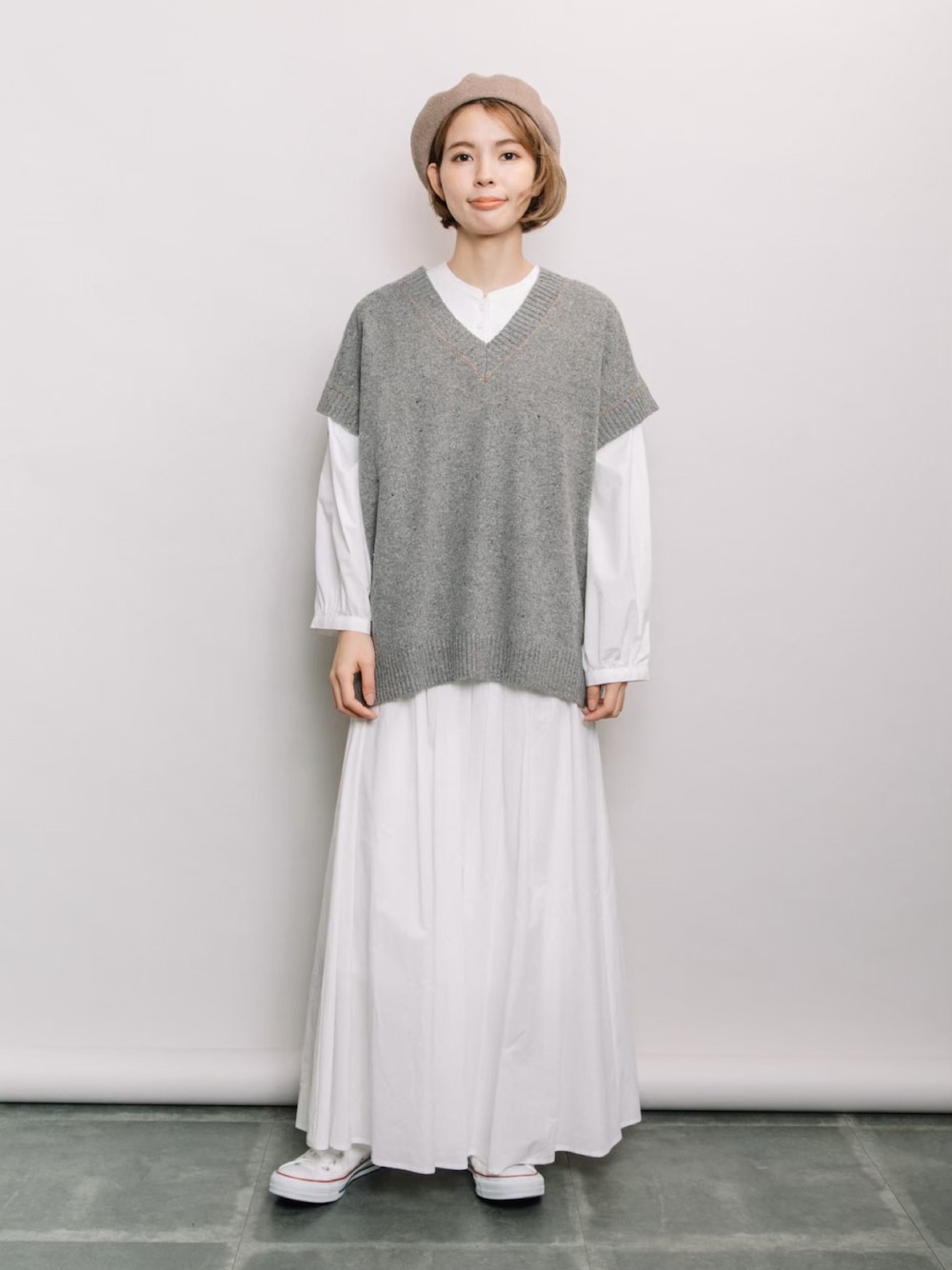 refinedworks【相互】のベスト「カラーネップニットベスト」を使ったコーディネート