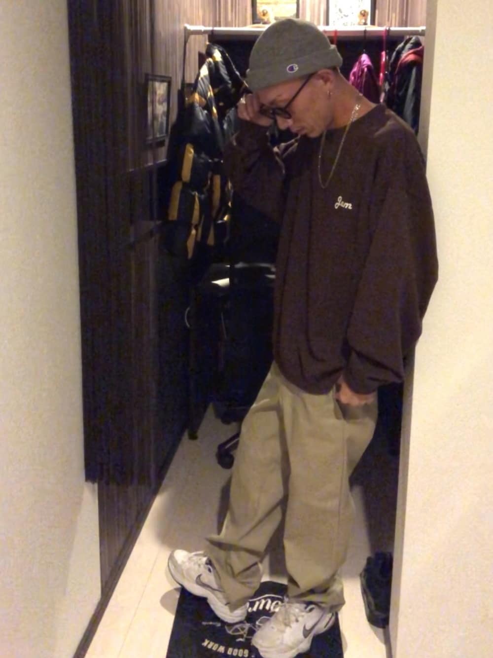ニット帽×874ワークパンツ 今日はスウェットとパンツは同系色で、渋めのコーデにしてみました🚬