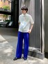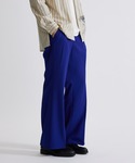 トップス→しっかりした生地感ですが、滑らかで馴染みの良い肌触り。やや緩めのシルエットですが、丈が長すぎず品が良い印象に。 パンツ→脚が長く見える美シルエットのフレアパンツ。ウエストゴムで履きやすく、ポケットディテールのデザイン性もアクセントに◎