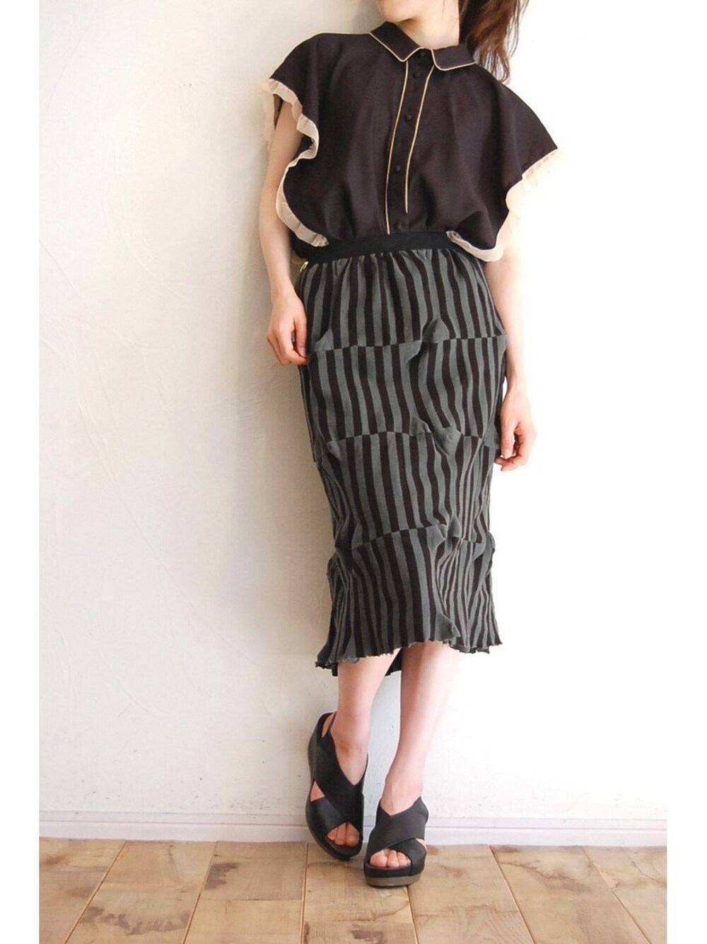chaosbohemiaのシャツ/ブラウス「バイカラーパイピングブラウス」を使ったコーディネート