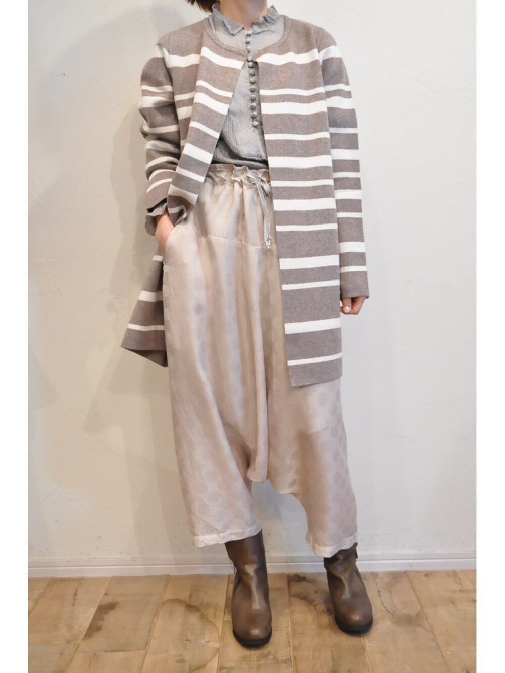 chaosbohemiaのカーディガン/ボレロ「knit border cardigan」を使ったコーディネート