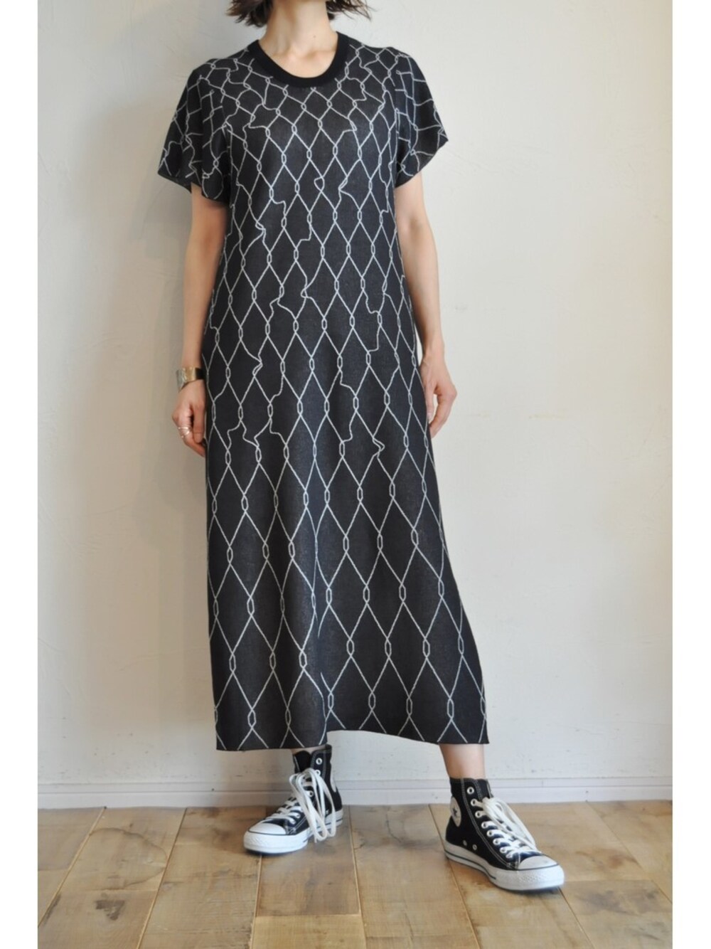 chaosbohemiaのワンピース「フェンスニットワンピース」を使ったコーディネート