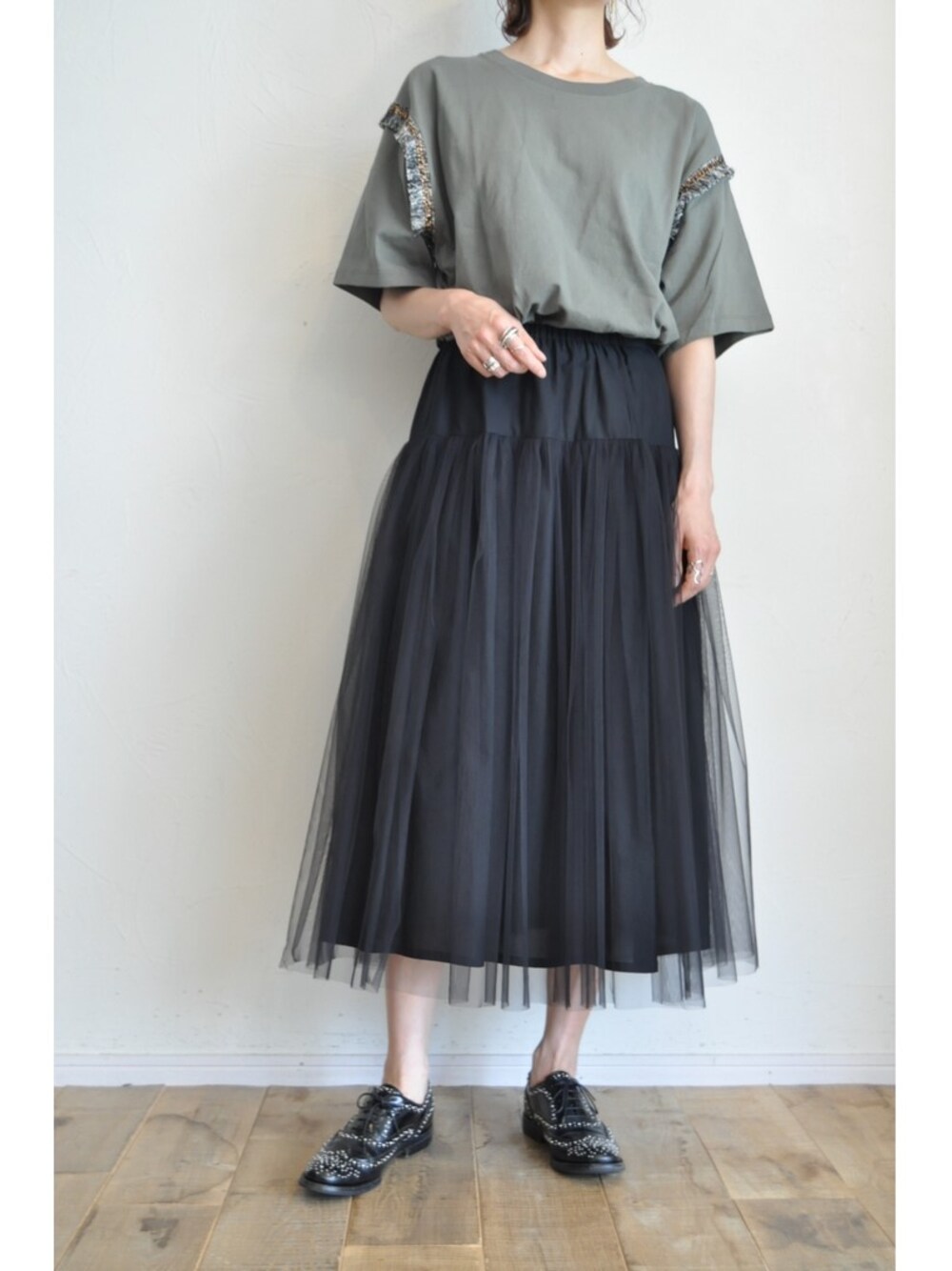 chaosbohemiaのスカート「チュールギャザースカート」を使ったコーディネート