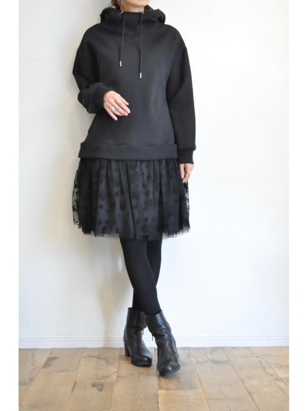 chaosbohemiaのワンピース「スウェットチュールワンピース」を使ったコーディネート