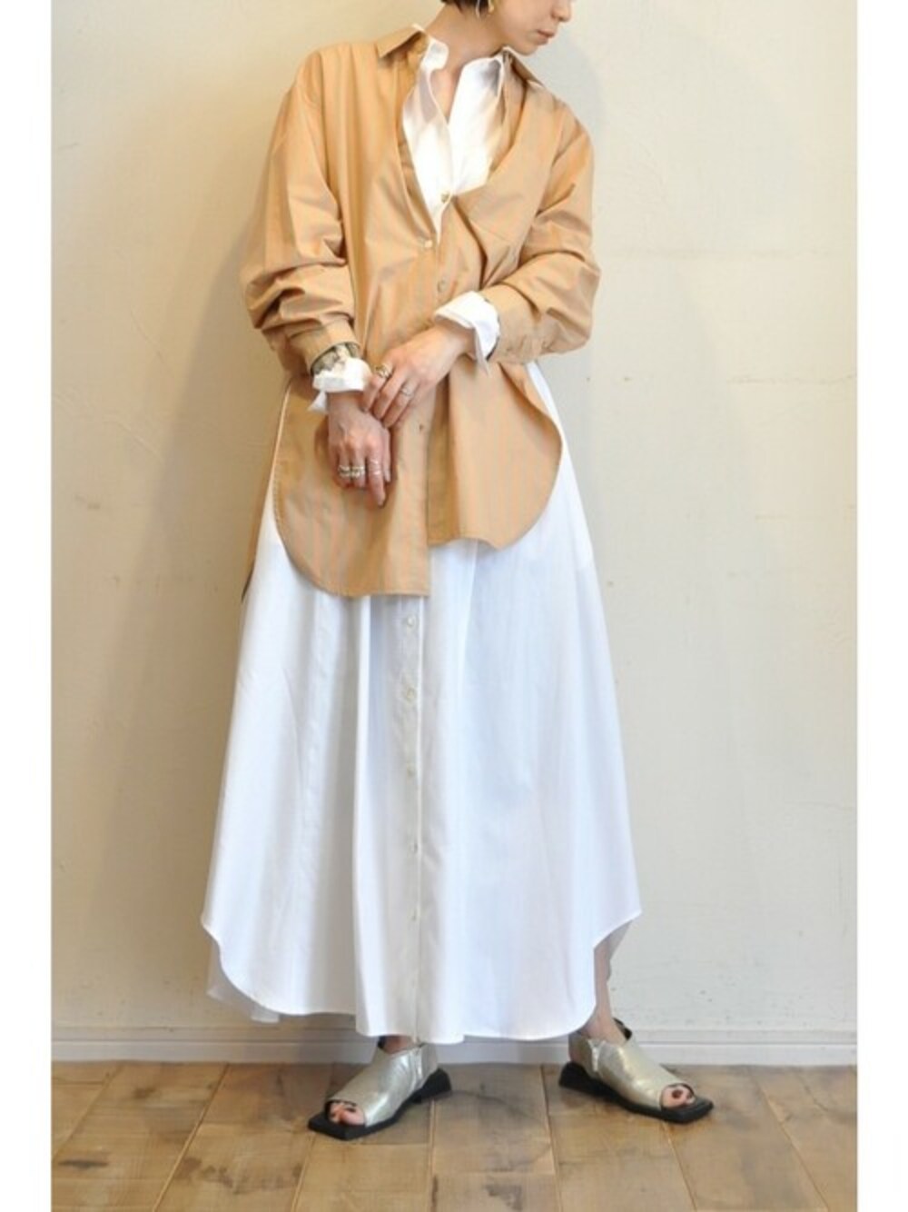 chaosbohemiaのシャツワンピース「ドビーシャツワンピース」を使ったコーディネート