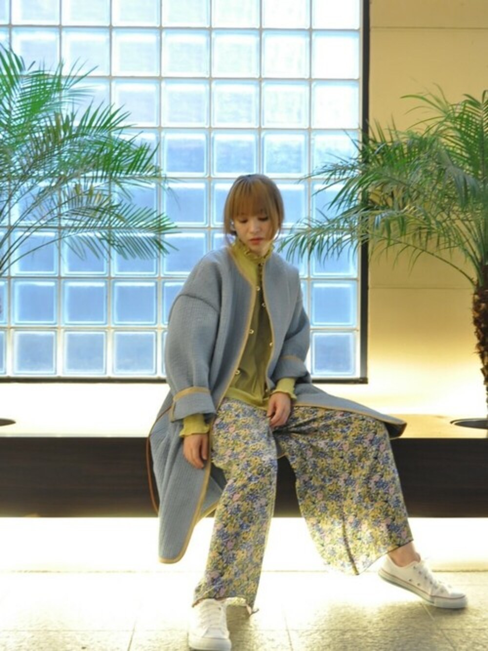 chaosbohemiaのノーカラーコート「イブルコート」を使ったコーディネート