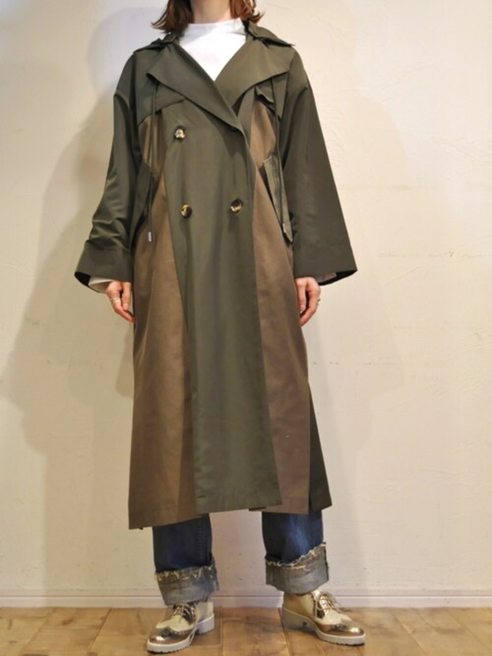 chaosbohemiaのその他アウター「ブロックオーバーコート」を使ったコーディネート