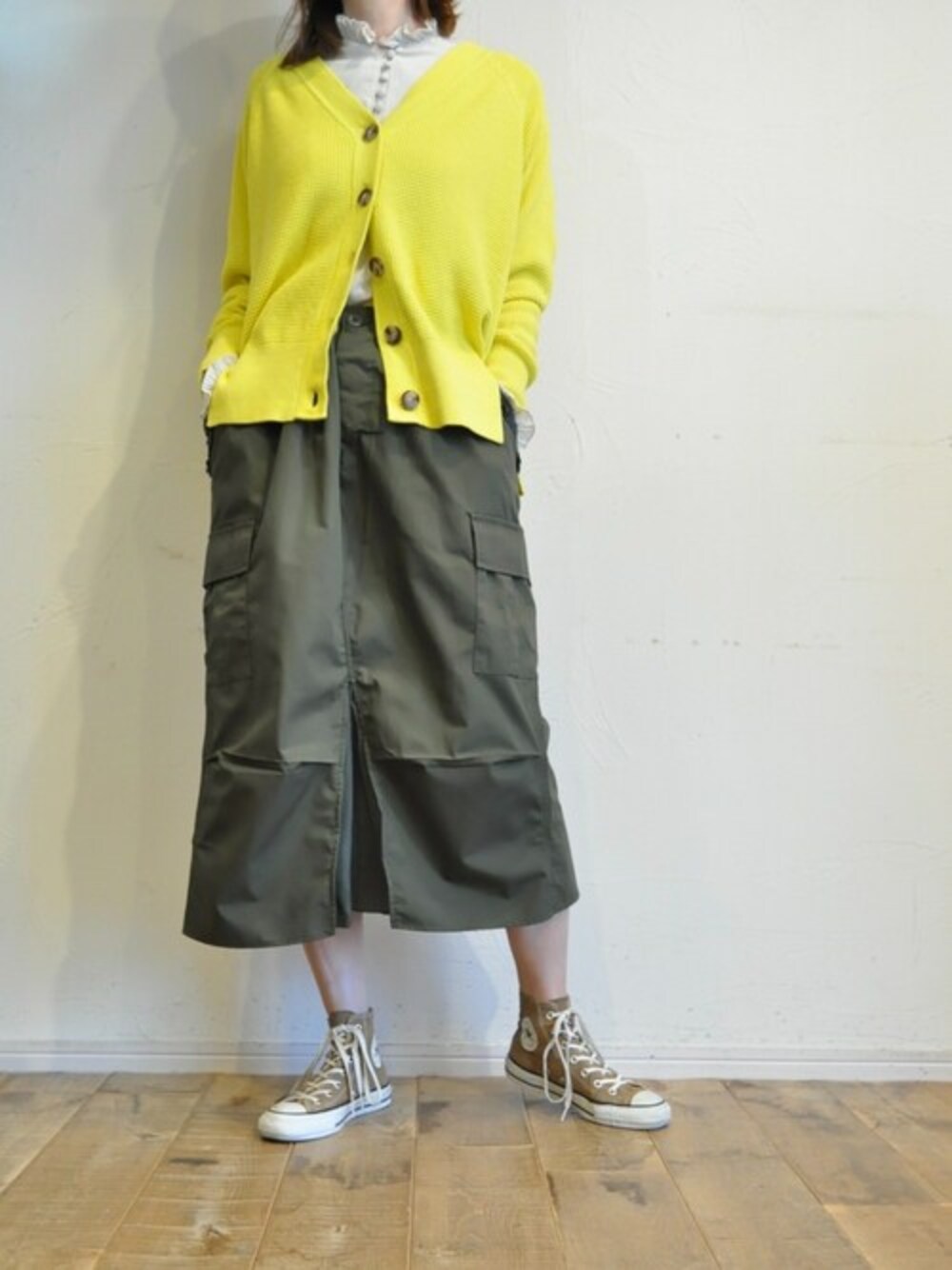 chaosbohemiaのカーディガン/ボレロ「スリットワッフルカーディガン」を使ったコーディネート