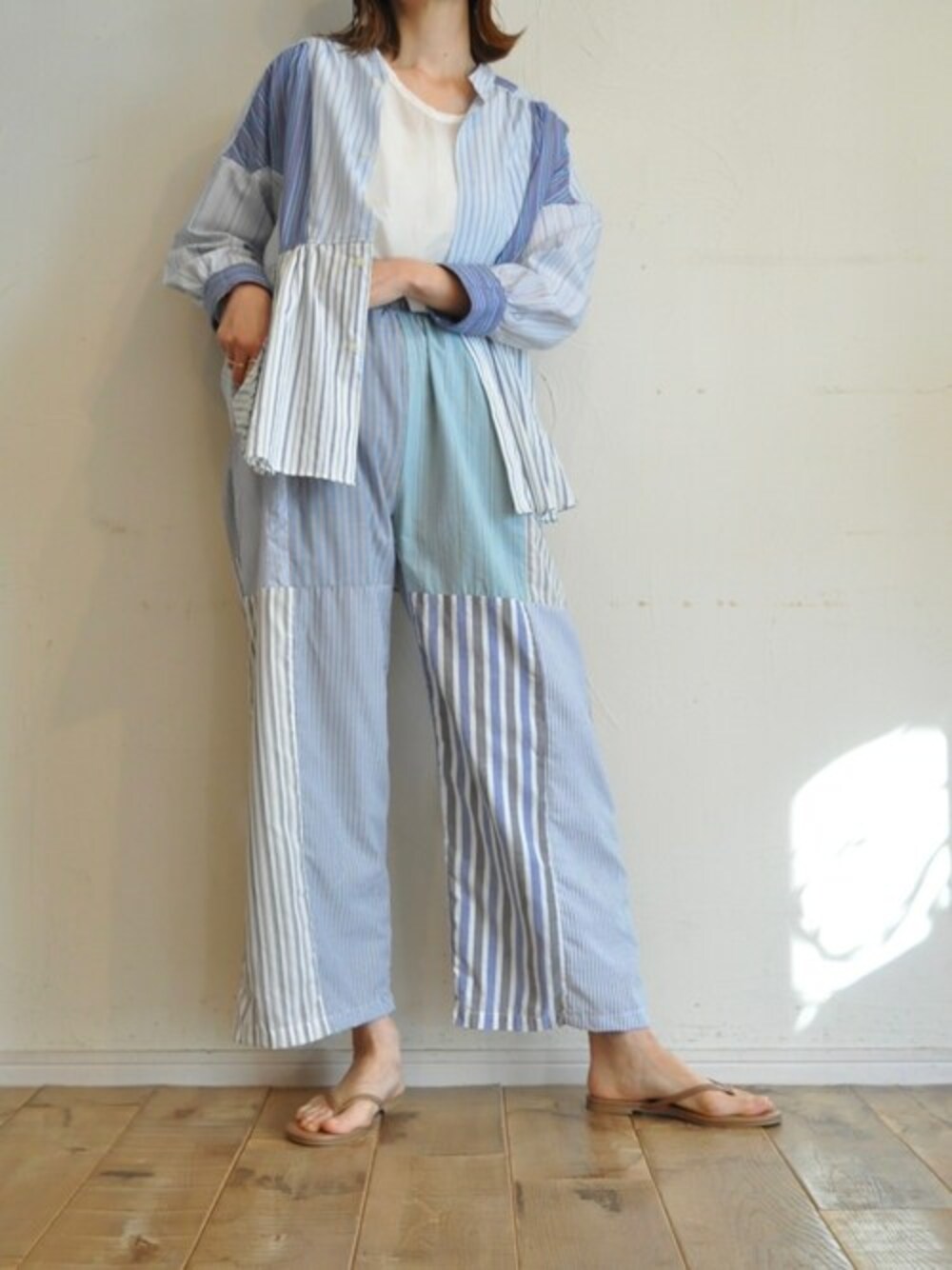 chaosbohemiaのシャツ/ブラウス「ストライプシャツパッチブラウス」を使ったコーディネート
