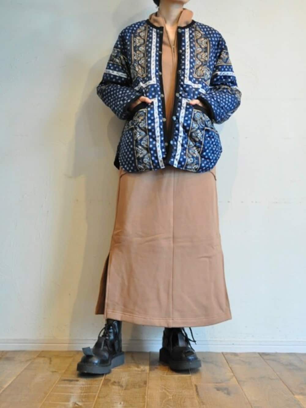 chaosbohemiaのノーカラージャケット「スカーフプリントジャケット」を使ったコーディネート