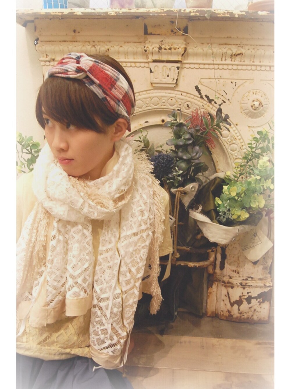 chaosbohemiaのヘアバンド「チェックターバン」を使ったコーディネート