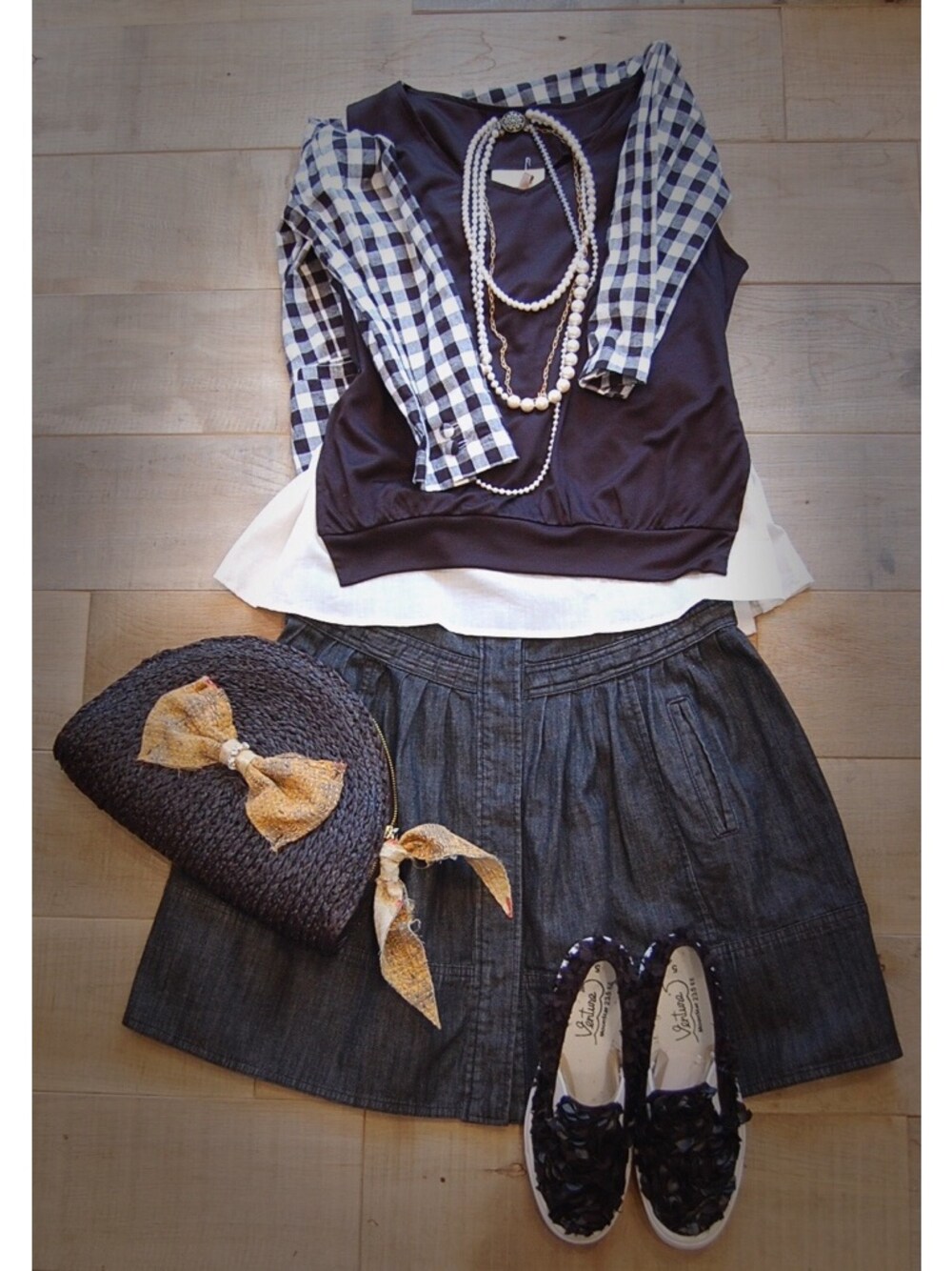 chaosbohemiaのテーラードジャケット「ギンガムチェックシャツジャケット」を使ったコーディネート