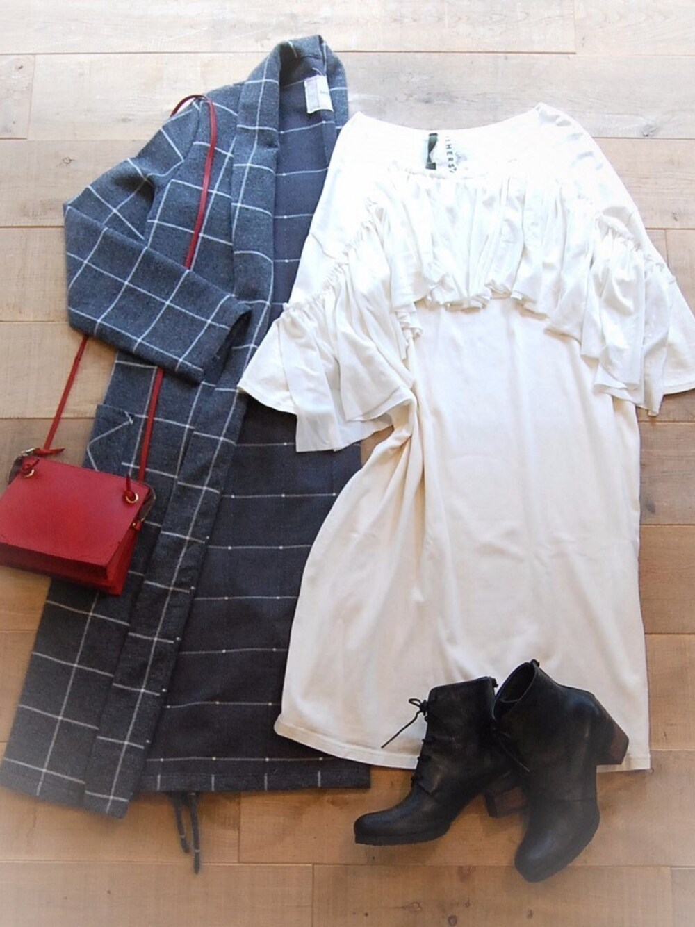 chaosbohemiaのその他アウター「グラフチェックコート」を使ったコーディネート