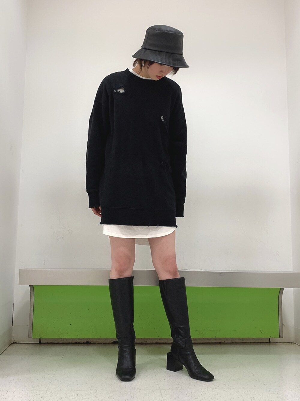 【レイヤード&ロングブーツ】 ・この時期になると着たくなるロンTとトレーナーをレイヤード♥ ・今年流行りのロングブーツでカッコよく♥