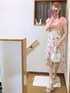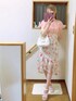 7月14日(月)☀️⇒☔️予想最高気温32℃ 見ていただきありがとうございます😊 本日は、優しいピンクコーデにしてみました🩷 スカートは、昨年買ったものでピンクの薔薇柄に箔押しデザインになっています🌹 とても、素敵で一目惚れしたスカートです😍 ヒラヒラとしたデザインなのが好きです♥️ レースのフリルブラウスを合わせました❣️ 肩が2段フリルになっています🎵 インナーには、ピンクのキャミを着ました🩷