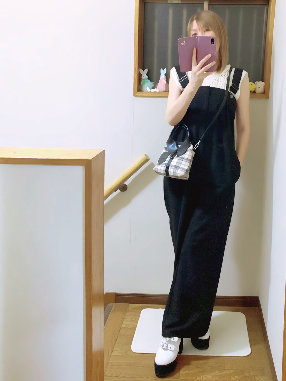 8月12日(火)☁️予想最高気温32℃ 見ていただきありがとうございます😊 本日は、サロペットを使ったコーデにしてみました🎶 最近、サロペットが好きになりまして、、🥰 GUに行った際、気に入り買いました🛍 お値下げもされていました😆ᩚ🩷✌️ インナーのキャミに、あみあみのノースリーブトップスを合わせました🎵