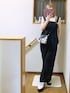 mami太郎のドレスシューズ「厚底プラットフォームビジューベルトブーティー」を使ったコーディネート