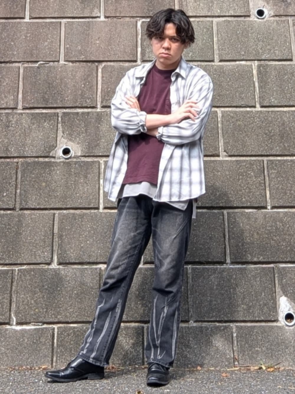 れいのシャツ/ブラウス「オンブレチェックオーバーサイズレギュラーカラーシャツ」を使ったコーディネート
