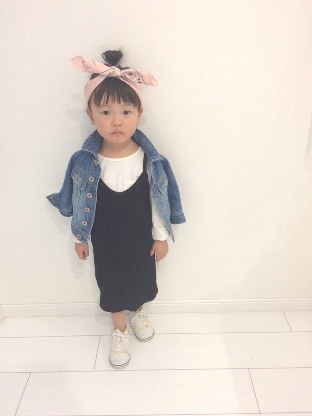 いつも見ていただきありがとうございます✨ キャミワンピコーデ♡ Gジャンのブルーとスカーフのピンクを組み合わせて春らしく🌸
