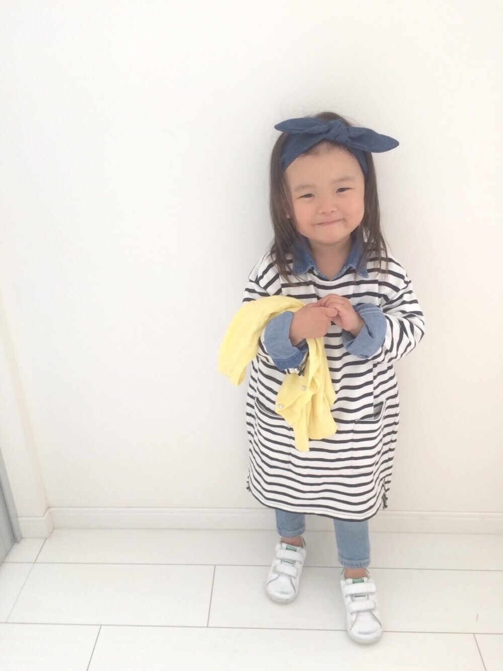 いつも見ていただきありがとうございます✨ ボーダーワンピ着回しコーデ♡ 今日のヘアスタイルはいつもと違ってデコ出しに髪をたらしてみました😚 写真の撮り方もいつもよりお姉さん気分?のひなのになってまーす😆💕