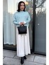 冬の華やかニットコーデ❄️ スパンコールニットとプリーツスカートを合わせて華やかで品のあるコーデに◎ ニットはややショート丈なのでどのボトムスとも相性抜群!縦のラインをすっきり見せてくれます。 足元とバッグはブラックでまとめてみました! ※バッグを逆向きで持ってしまったのですが、表面両サイドはリボンを巻いたような編み込みデザインとなっております👜🎀 気になる方は是非以下のリンクからチェックしてみてください♡