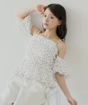 reinya(Chico博多アミュエスト店)のシャツ/ブラウス「袖取り外しフラワーペプラムブラウス」を使ったコーディネート