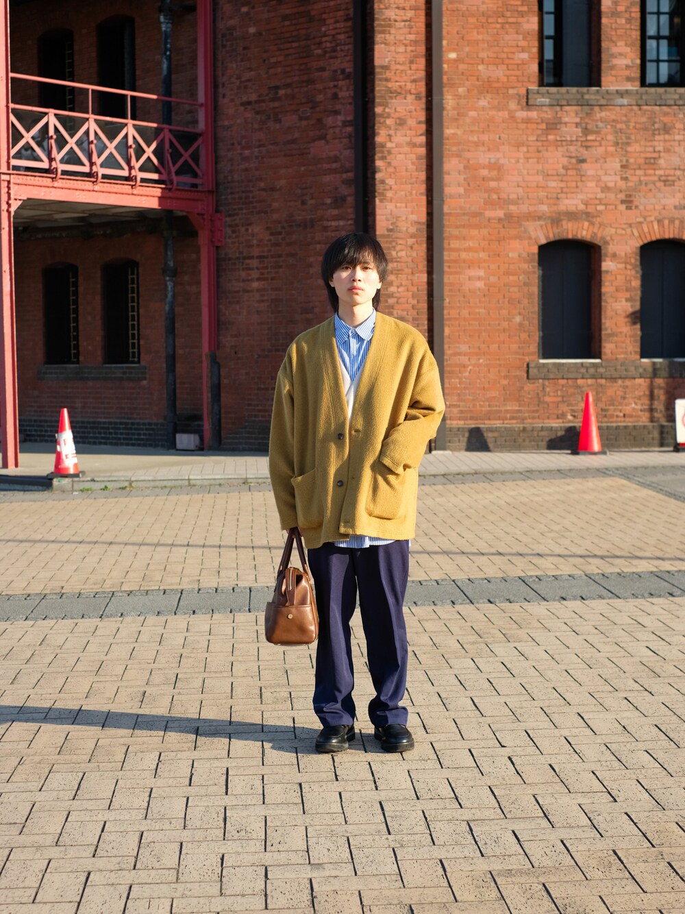 なんか盛れてる?🤩 ・ 春らしいマスタードイエローのカーディガン。soerteさんのなんだけど、色もサイズ感も最高にGood。 シャツとベストは毎回御用達、LOWRYS FIRMさん。ビックサイズのストライプシャツで1枚でオシャレに着れる…!😎