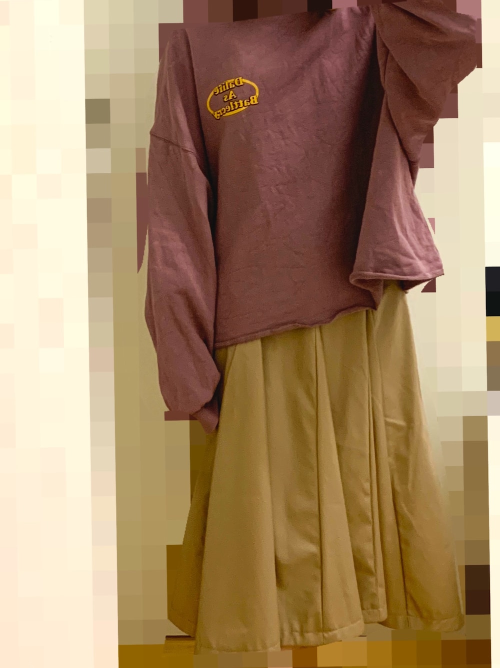 一万円以内で出来るコーデです! ベージュのレザースカートは色々なものに合うのでおすすめです!