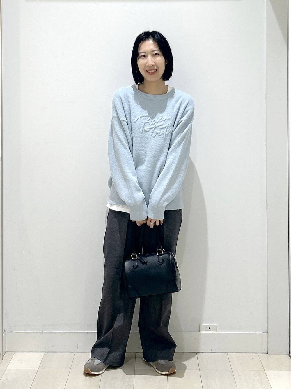 大人カジュアルスタイル ふわふわニットが気持ちいい かわいいロゴが入ったニットです 肌触りがもちもちっとしていて 空気を含むので暖かく着てもらえます ボトムスを選ばない丈感のニットです インナーを入れるとこなれ感が出ます カジュアルスタイル好きな方にはおすすめの 着方の一つです パンツは店頭でも人気だったパンツの 冬仕様のものが入荷しました 裏起毛になっていて暖かく着てもらえます センタープレスしてあるので ちょっとキレイめに履いてもらえるのがおすすめです Mサイズ着用してます 楽ちんスタイルだけどラフすぎないのが嬉しい
