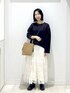 きれいめコーデ セットになってるアイテムなので 何も考えずに着れるのが嬉しいセットです スカートにはペチコートついていますが やはり白なので下着の色は気を使うのがおすすめです バラバラにも使えるので着回しコーデできます ニットもふわふわあったかニットなので 他のボトムスにもぜひ合わしてください