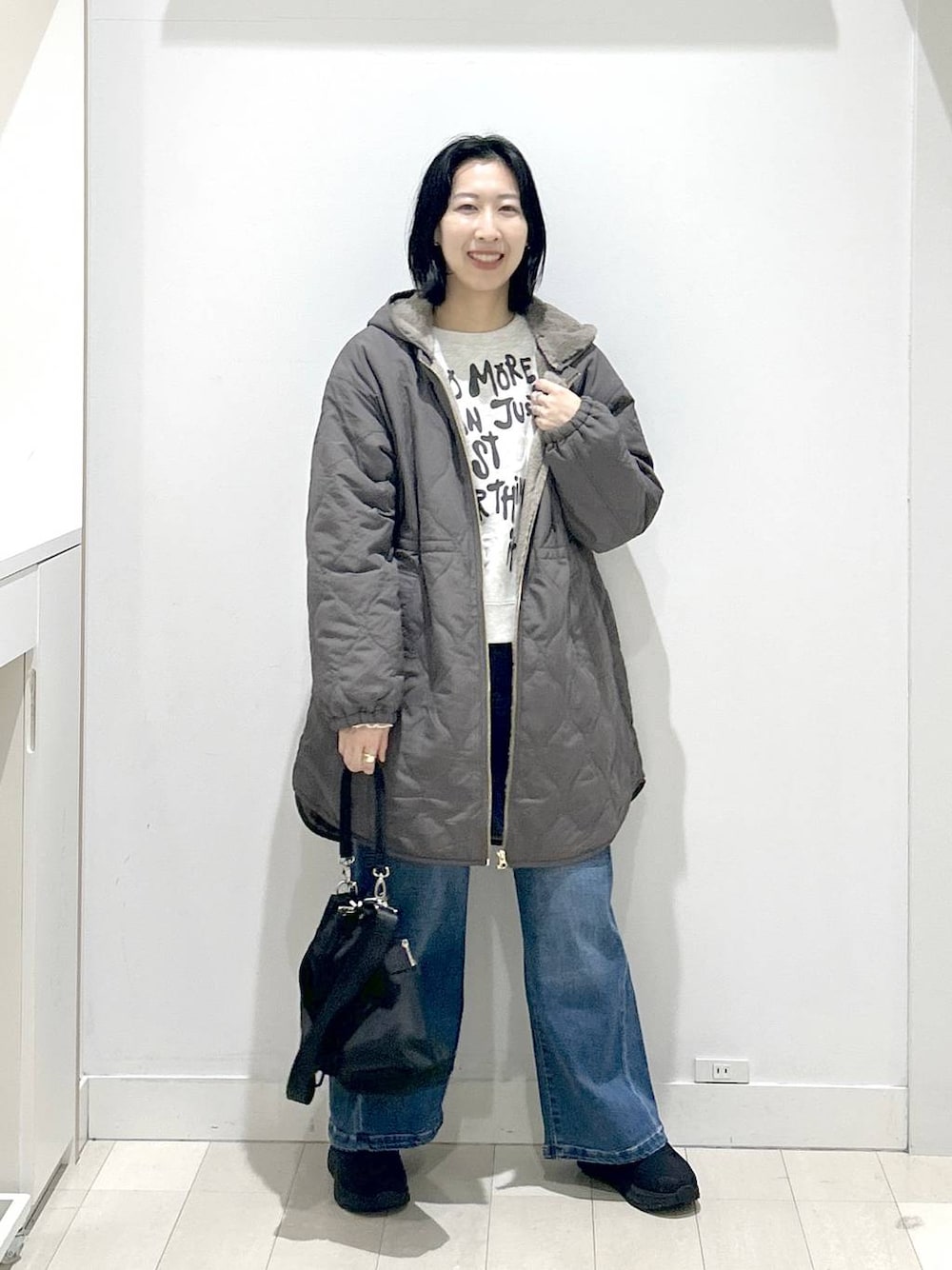 カジュアルスタイル 子どもと公園やちょっとそこまでの お出掛けに楽ちんスタイル アウターはフードの取り外しが可能です 中がファーなので暖かく着てもらえます 長さもあるので腰、お尻周りが冷えるのも 防げます ドロコードもウエストについているので メリハリつけたい時におすすめです 裏起毛のスウェットは 寒い時のカジュアルスタイルにおすすめ ショート丈はボトムスにボリュームあるものを 持って着やすいので ワイドパンツやスカート履かれること多い方は ショート丈がおすすめです デニムは裏起毛のあったか素材 ウエスト部分がゴムで楽ちんなパンツです Sサイズでもだいぶ余裕があるので ウエストの紐でしばったりベルト巻けるので 調整できます