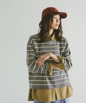 ある日のリアルコーデ 冬の終わりを感じる新しい商品が入荷しています スウェットのようなニットが入荷 マルチボーダーなので カジュアルすぎないデザインで着れます 袖口がゆるっとしたシルエットでかわいい ストレッチも効いててストレスフリーで着れます デニムはボリューム感のあるバレルパンツ 裾に向かってきゅっとなっているので ほどよいくしゃっと感がかわいいシルエットです ウエスト後ろがゴム仕様になっているので お腹も苦しくなく履けます