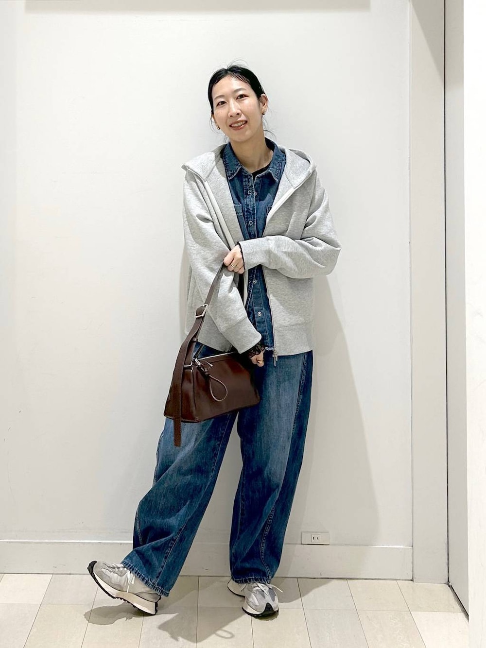 春のカジュアルコーデ デニムのセットアップに スウェット合わせの簡単おしゃれコーデ セットアップでなくてもお持ちのシャツ合わせでも 着回しできます スウェットの素材感が ツルッとしたような感じなので カジュアルすぎない質感が私たち世代にも きれいな印象で着れます デニムシャツは裾の処理が 切りっぱなしのようなデザインなので ワンポイントになってます デニムはバレルパンツで ゆったりシルエット カジュアルスタイルにおすすめです