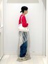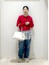 春コーデ 今年人気の切り替えニット ワイドボトムスに合わせやすい丈感です 赤色が目を引きます レースはワンポイントになるアイテムです 普段使うパンツの上に合わせてもらうだけで いつもと違うコーデになります デニムはカジュアルスタイルにおすすめな バレルパンツ ハイウエストなので足が長く見えます