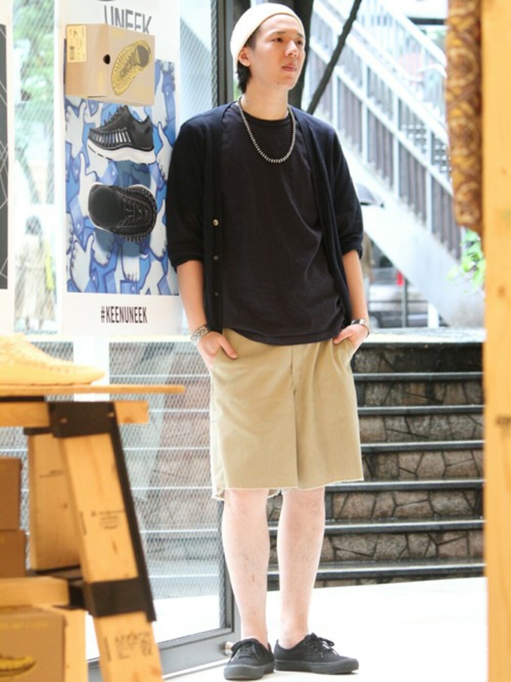 リネン素材のカーディガンは、いつものTシャツ&ショーツスタイルに羽織るだけでどことなくきっちり感が出る優れもの。朝晩の羽織ものとしても大活躍です。サイズはLでジャストサイズです。