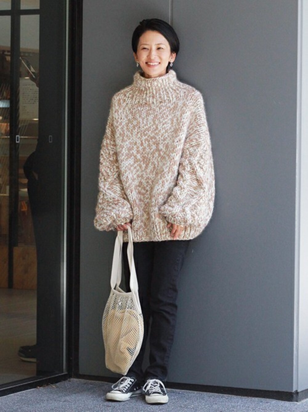 ボリューム感のある今年らしいハイネックニット。 スキニーパンツとさらっと合わせるのはもちろん、マキシスカートなどボリューム感のあるボトムスとの合わせも◎