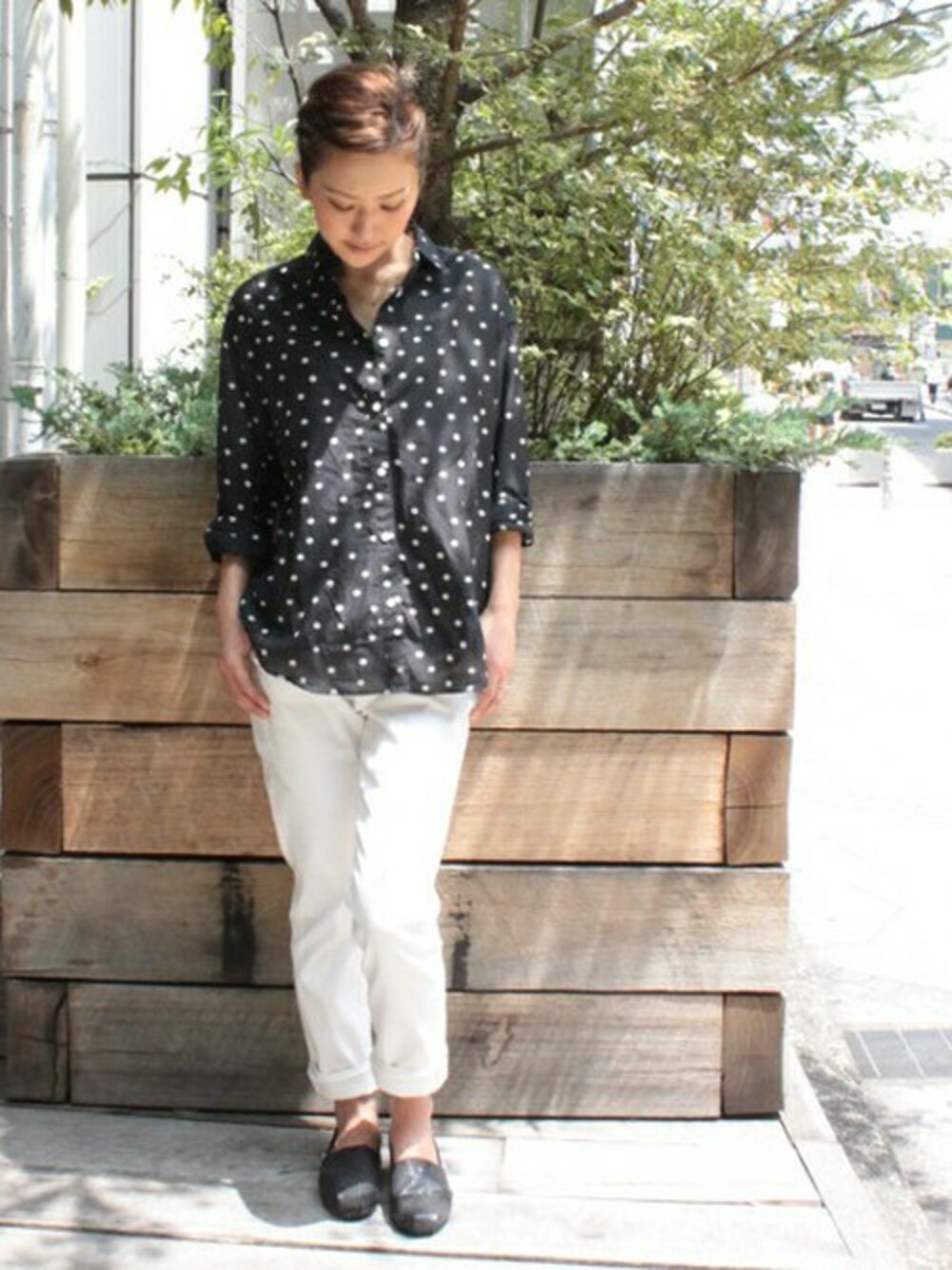 Makkieのシャツ/ブラウス「ランダムドットプリント カシュクールシャツ#●」を使ったコーディネート
