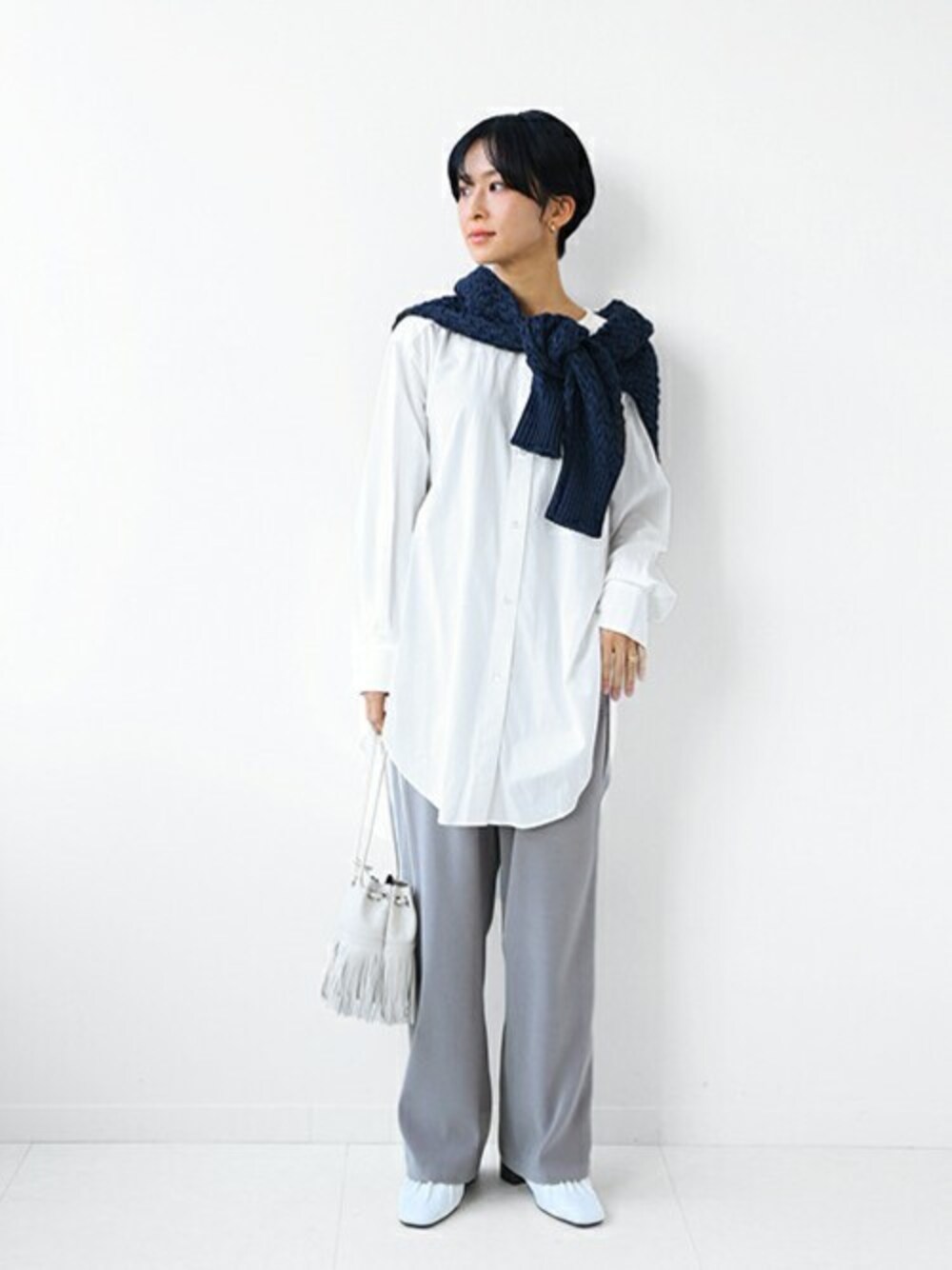 【コットンレーヨンバックフレアチュニックブラウス◆】 ◆大好評のブラウスが生地をリニューアルして登場! 緩やかなフレアデザインで、 バックスタイルまで計算され尽くした上品なブラウス。 デニムやリブパンツとも好相性な長めのチュニック丈は体型カバーにも◎ さらりと落ち感のある素材はシーズンレスで重宝すること間違いなしです! ********************** 身長:158cm/普段サイズ:S/着用サイズ:FREE サイズ感:後ろは腰回りまで隠れる長さがきれいです。 素材感:落ち度のあるレーヨン混素材 着心地:ノーカラーで長めの着丈が一枚でもサマに見えます! **********************