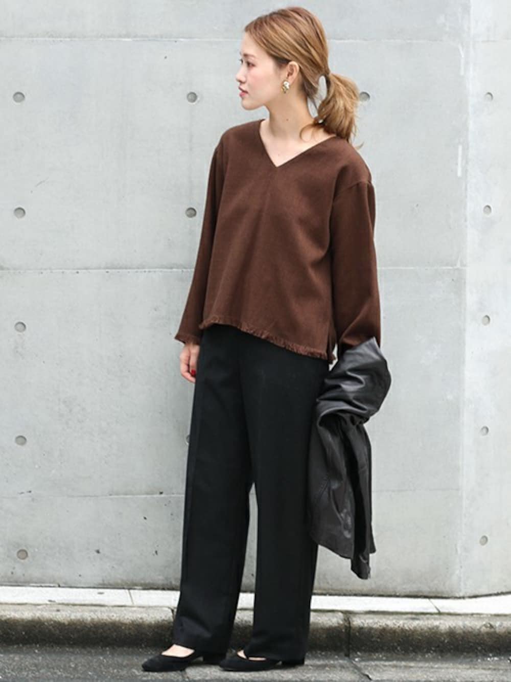 miyaのシャツ/ブラウス「ツイード フリンジVネックプルオーバー_#」を使ったコーディネート