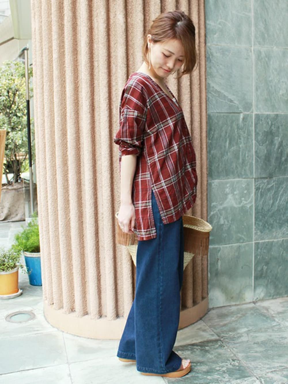 masu*のシャツ/ブラウス「テンセルコットン チェックVネックシャツ_#」を使ったコーディネート