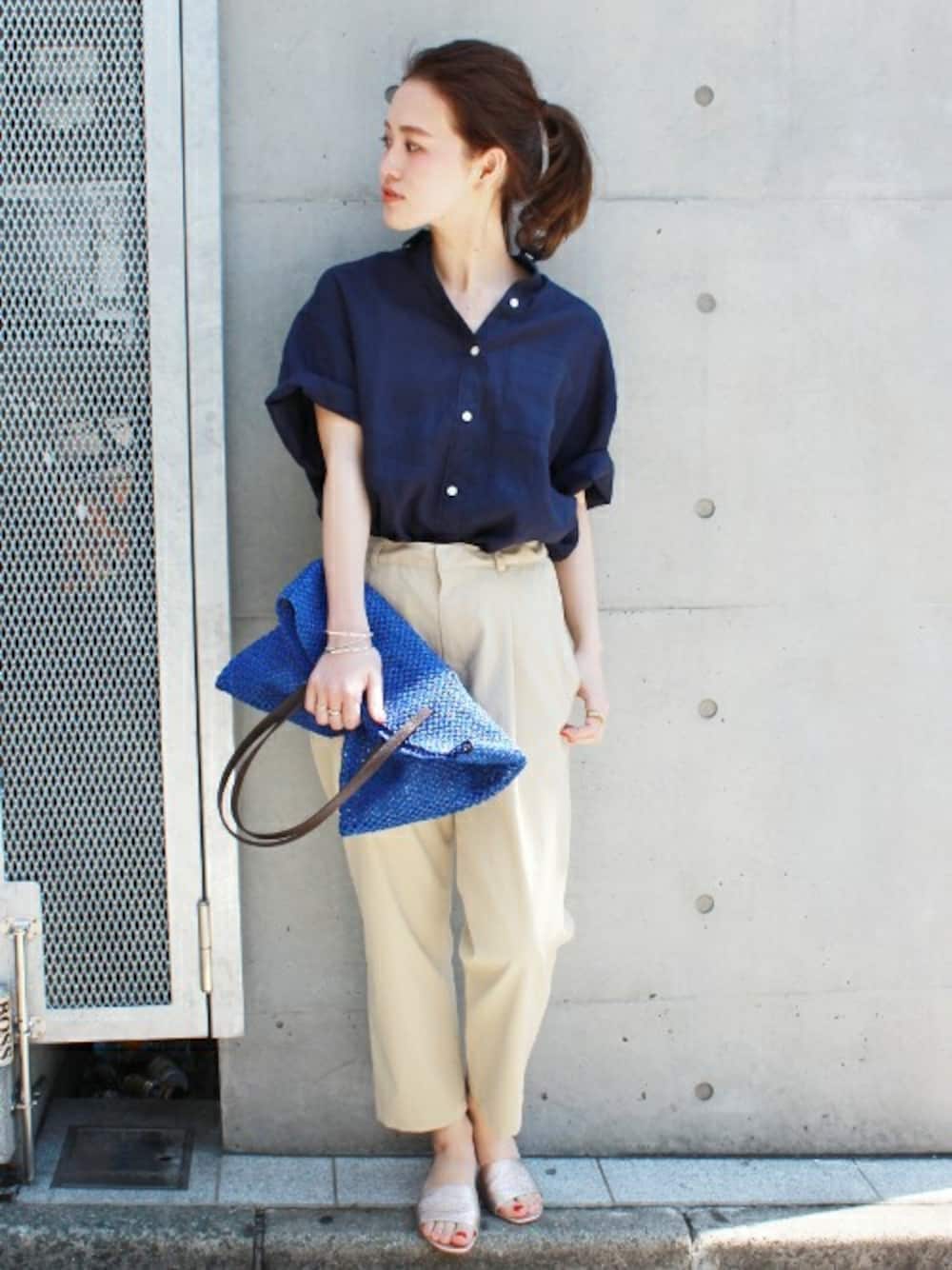 masu*のシャツ/ブラウス「No66 LINEN 製品染め 半袖シャツ_#」を使ったコーディネート