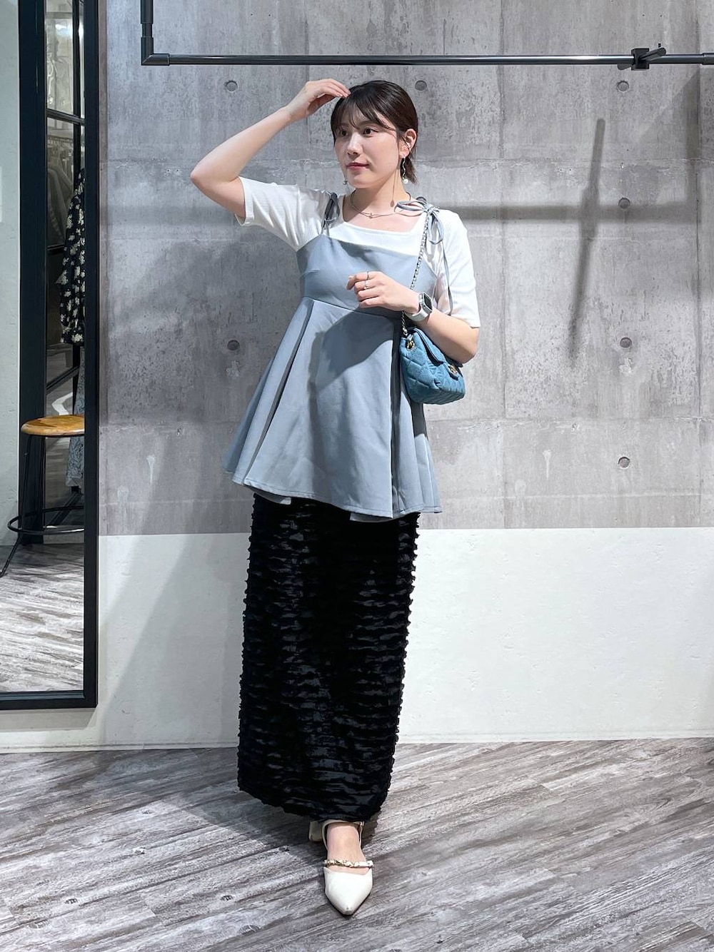 Rena(mysty woman タカシマヤゲートタワーモール)のキャミソール「[追加1]肩リボンペプラムキャミ 109956」を使ったコーディネート