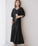 【one-piece】 綺麗めワンピースですが とても着やすくストレッチも効いていて 動きやすいワンピース ボリュームスリーブで気になる二の腕カバーと 可愛らしいシルエットになります😊💓 ウエストの紐でシルエットの調節もできます!