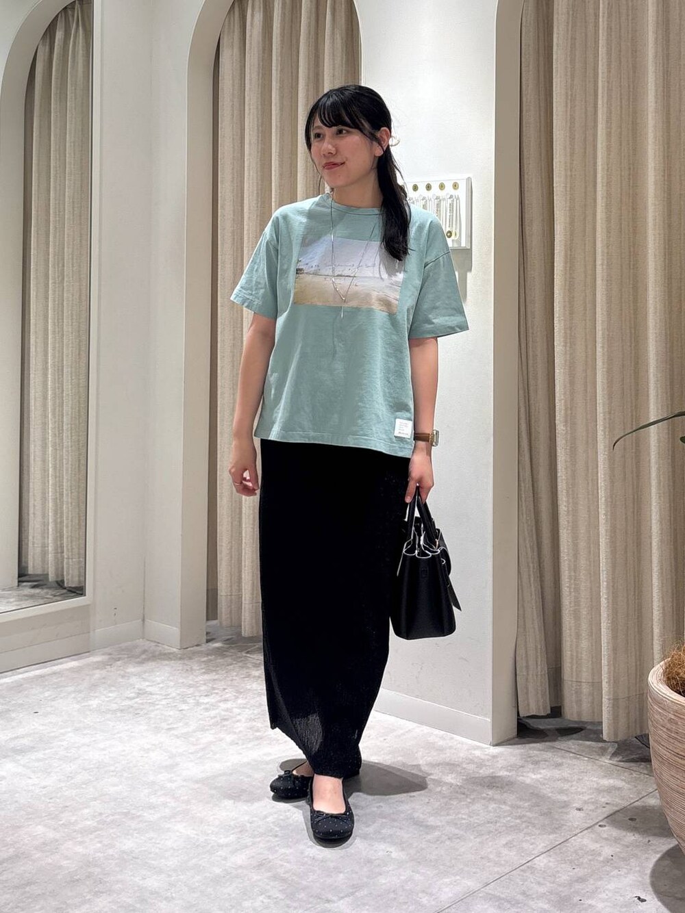 【Tシャツ】 花盛友里さんコラボTシャツ♡ 長めの丈バージョンです! 長さはインもできるし、アウトのままでも 着られる長さになっています! ピンク、グリーンのカラー展開もありつつ オフの色でシンプルに着こなしもできます◎ 夏っぽさが出るようなフォト展開で 1枚で夏らしさが感じられます! 裾のタグがポイントです♡ 【スカート】 ラメカットスカート! タイトスカートだけどストレッチがかなりきいているので履きやすさ◎ 別で外せる裏地がついているので、別のボトムやワンピースのペチコートとしても使えるよ♪ 裾部分だけ透け感出るようにして着ると夏も涼しげな印象で着られます!