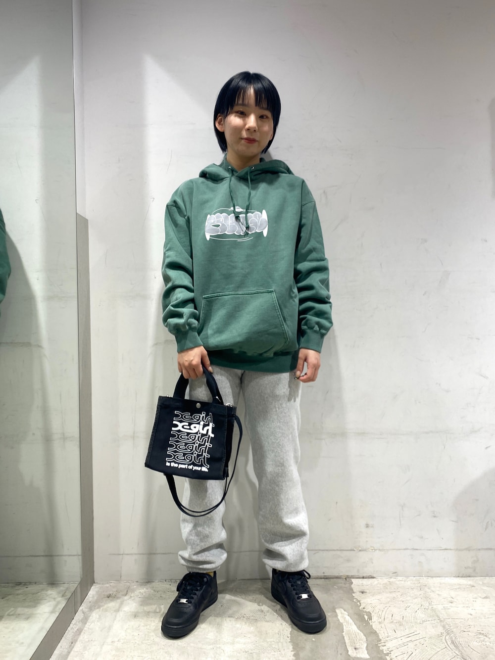 トップスS→フードも大きめサイズになっています!丈感はお尻が隠れるか隠れないかくらいの長さです! パンツS→丈感はジャストな感じです!裏起毛になっていて暖かいです! バッグ→ショルダーでもトートバッグとしても使える2WAYタイプになっています!