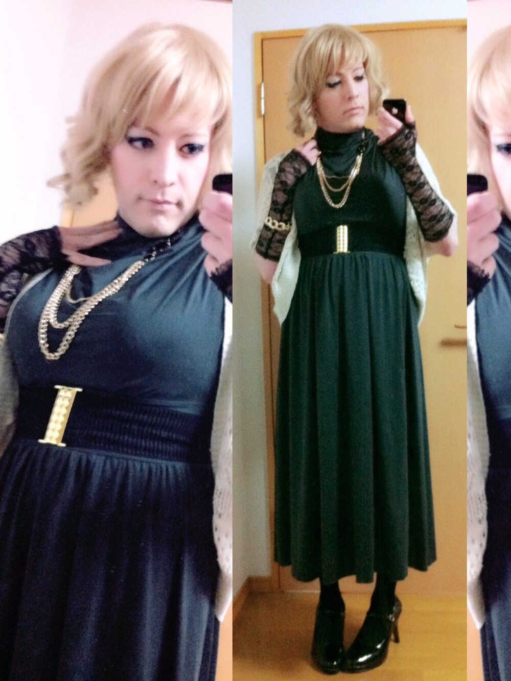 去年友達と一緒に作成した映画のロードショーの夜、このおしゃれスタイル。長いワンピースとカーディガン。