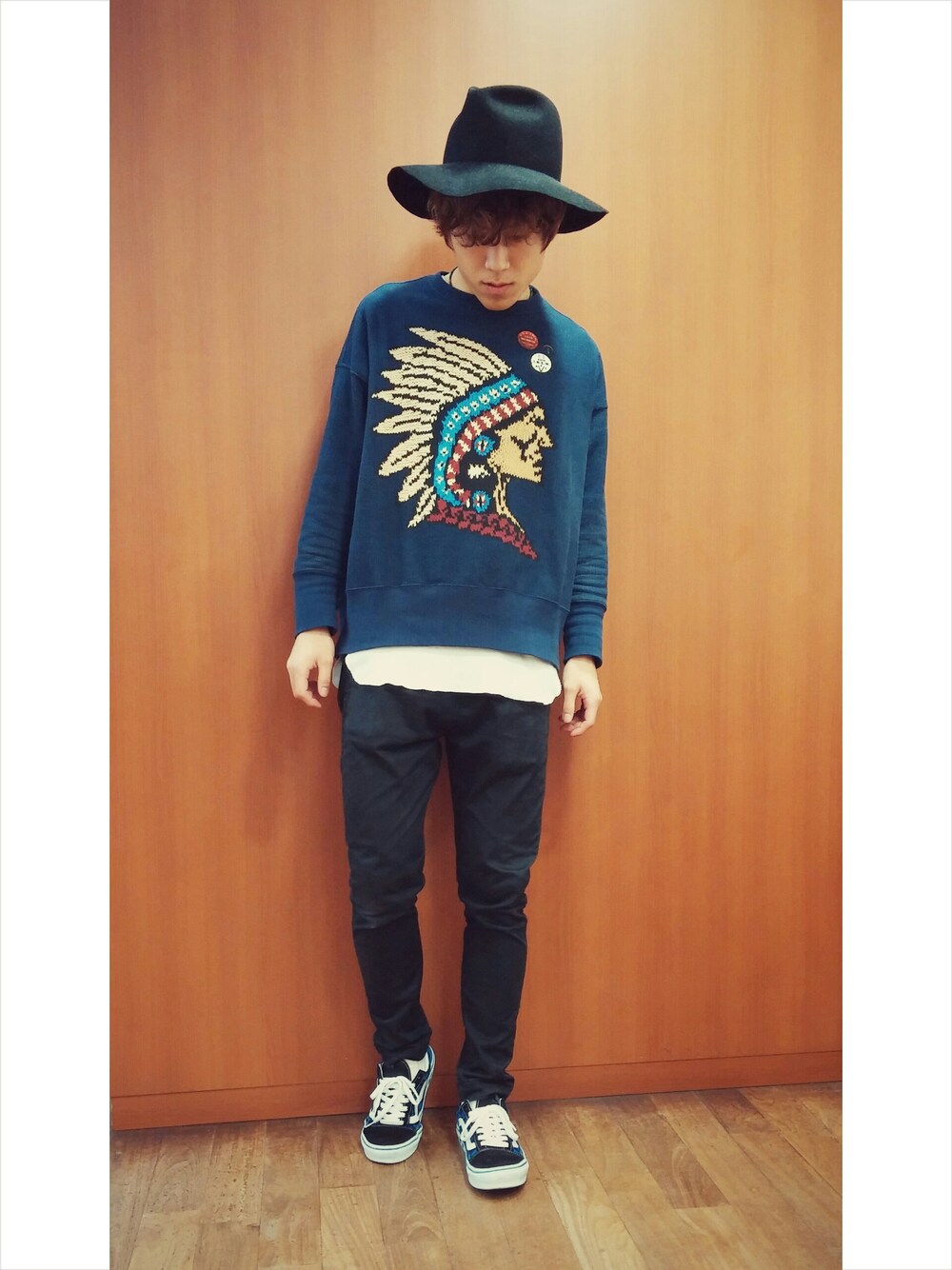 ビックシルエットのスウェットを主軸にVラインシルエットをつくりました。 パンツは、わかりにくいですが、サルエルのスキニーになってます。