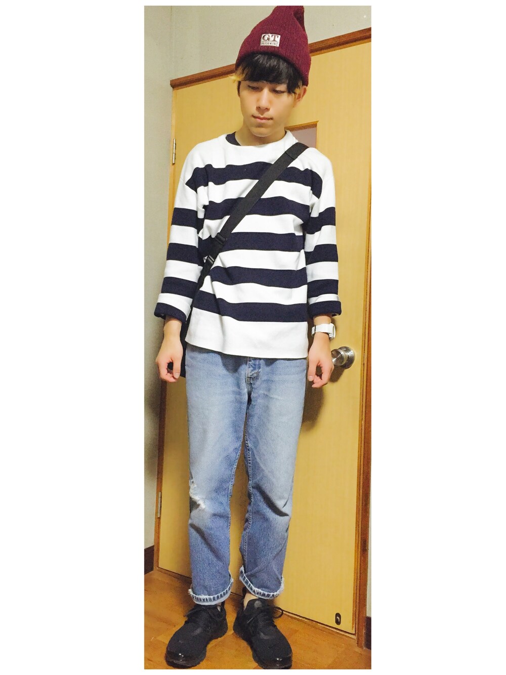 リラックス感のあるスタイルにしました。 最近はダメージデニムの気分です。 ナイキは、買ったばかりのエアプレスト。 軽くて歩きやすくて楽チンです。