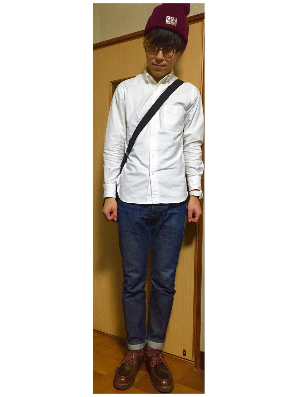 寝坊してしまった日は簡単に時短服に限る。 白シャツにデニムって鉄板だけど、僕はニット帽とメガネで雑誌ポパイのような雰囲気を出したい。