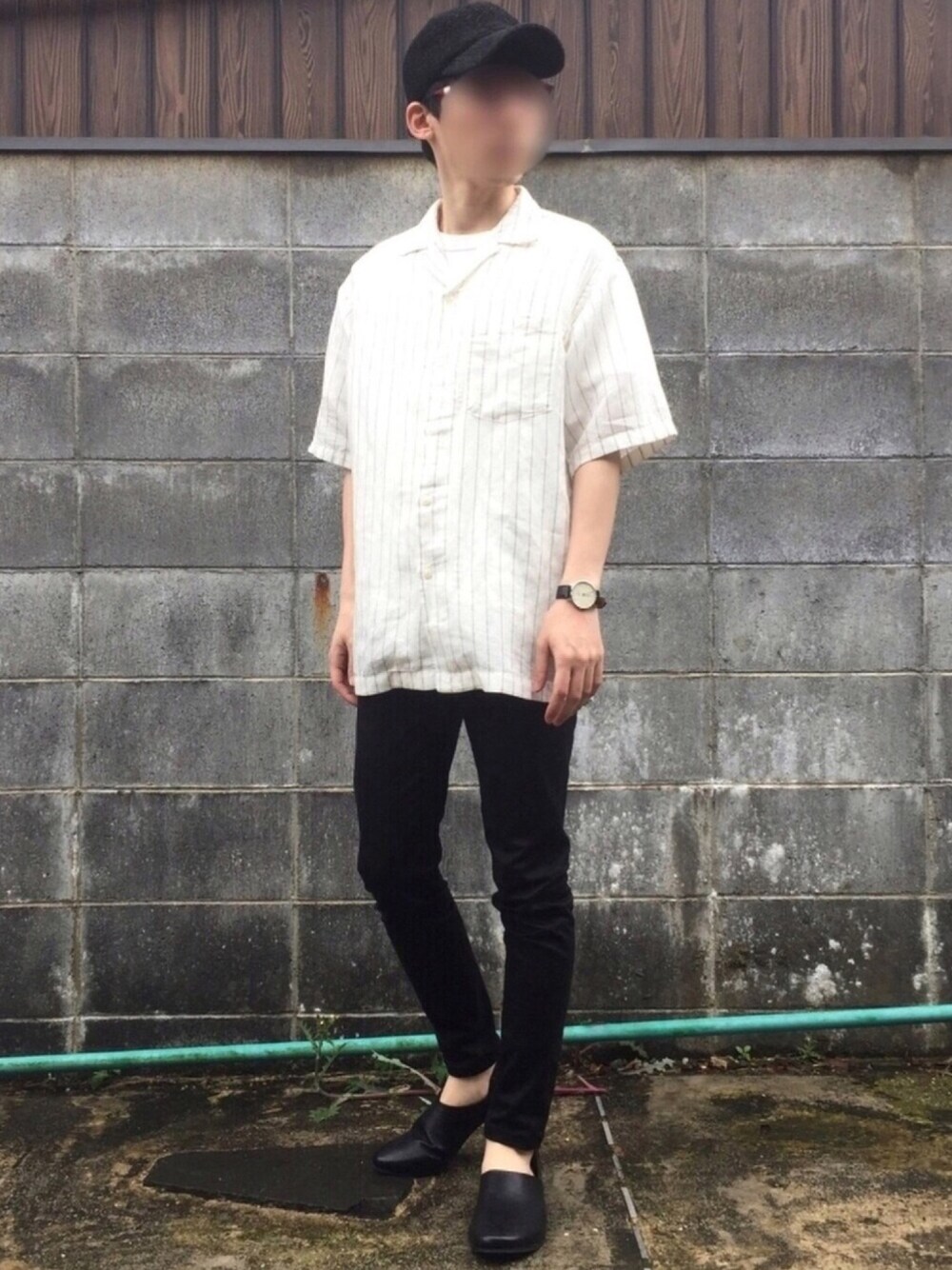 今年初めて買ったリネンのオープカラーシャツ。 ビッグシルエットでボーダーのオープンカラーとスキニーパンツでシンプルに。